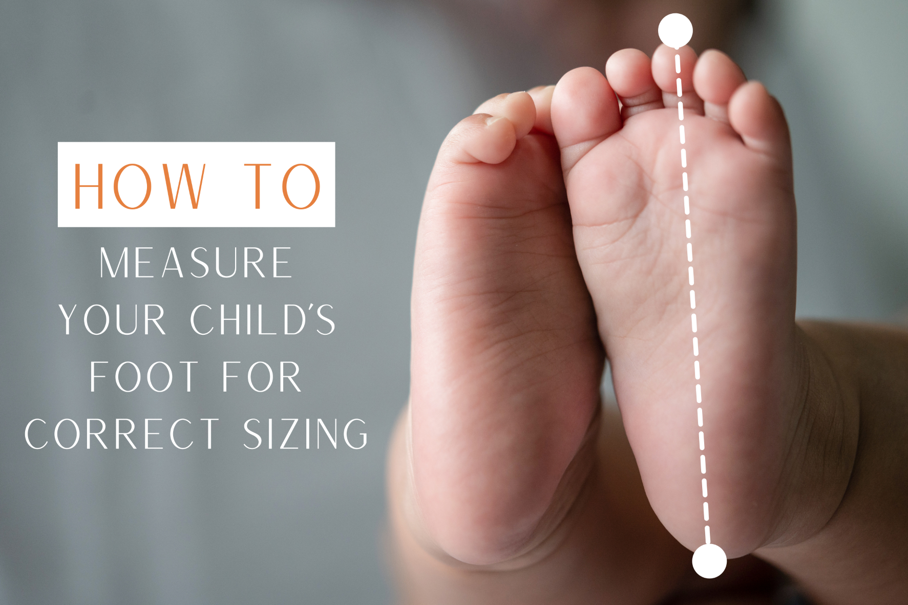 To determine your child’s shoe size, have them stand (or press their foot) on a hard, flat surface. Measure from the back of the heel to the top of the big toe, then add 1/2". Use the final measurement to find the correct size on the chart below.